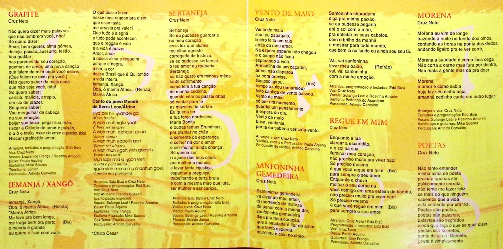 Cruz Neto evidentemente gosta muito do que (bem) já fez, mas tem uma canção inédita que é sua favorita, intitulada “Nódoa” – que certamente será tirada do ineditismo. porque o cantor e compositor tanto gravou e quanto foi gravado já faz bastante tempo.