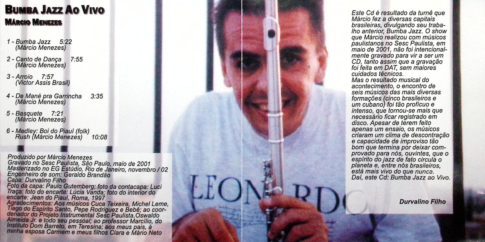 Em 2003, três anos após a gravação de “Bumba Jazz” ele lançou o CD “Bumba Jazz ao vivo”, resultado da turnê de shows realizada pelo músico em diversas cidades brasileiras para divulgação álbum feito em estúdio. O show no Sesc Paulista contou com a participação de Cuca Teixeira, Michel Leme, Pepe Rodrigues, Tiago do Espírito Santo e Bebê. No repertório, composições registradas em seus dois primeiros discos, além de uma versão de “Arroio”, do saxofonista Victor Assis Brasil.